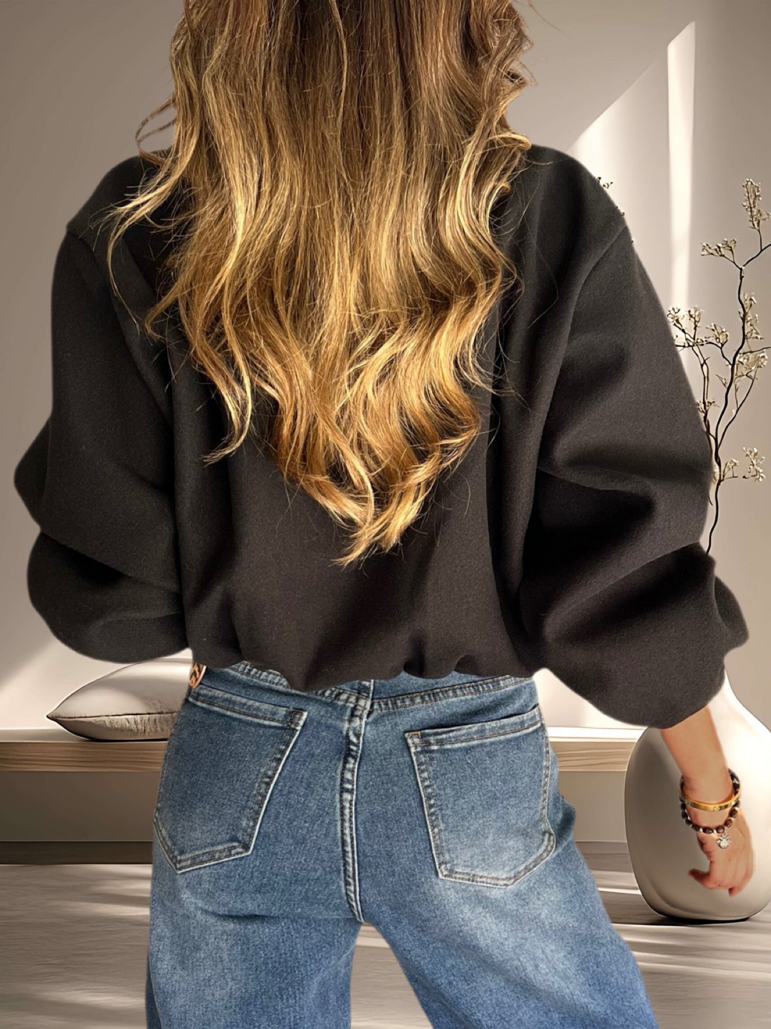 Bomber de paño con cierre y bolsillos color negra (Italiana 🇮🇹)